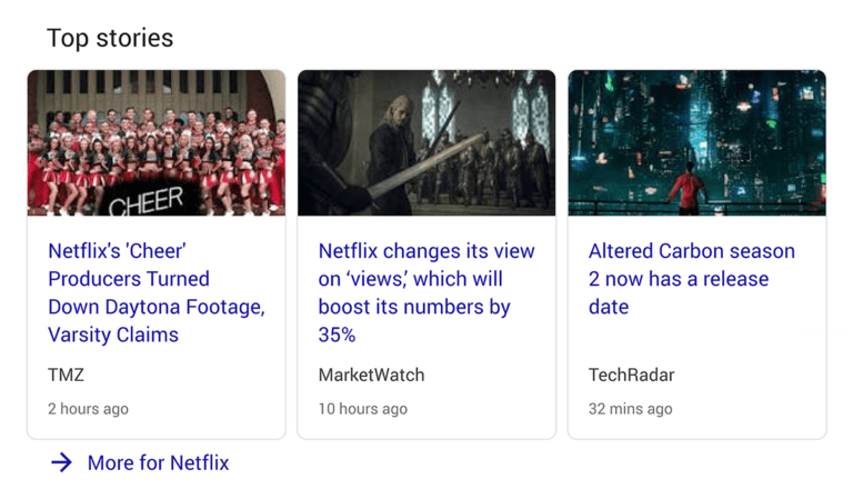 157- جعبه اخبار برتر (Top Stories): برخی جستجوها، بهویژه آنهایی که مربوط به اخبار روز هستند، باعث نمایش یک بخش ویژه به نام “اخبار برتر” در نتایج گوگل میشوند.